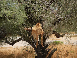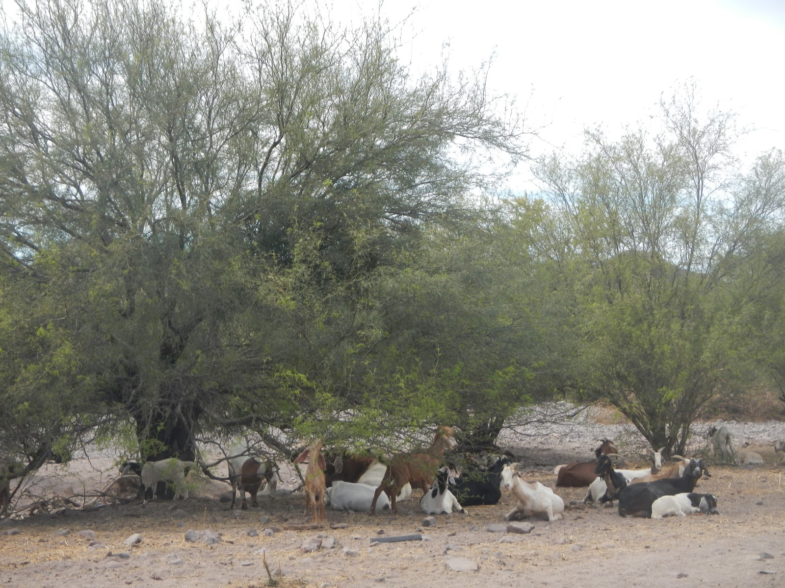 3/20 Anchor up at 11:00AM heading to Agua Verde 15 miles. Puerto Gato y Toro was beautiful! Very glad for the experience. No wind HOT 89º in the galley. 13:50 still no wind. Almost to the dangerous Marcial rocks. Got a fish on trolling but it snapped the line! (dad, the smaller rod with the annoying tip that bites the line, ugh. Gotta keep it on the roller) we pulled into Agua Verde after a very long and hot afternoon of no wind. We spent the day dumping buckets of water on ourselves and smothering sunscreen. First we went to the southside anchorage to check it out. There were 2 other boats. We attempted an anchor drop. Curious about the north side. Anchor down at 16:30 on the north side. More swing room and better depth. Goats on the hill. We were told this town makes fantastic goat cheese. Immediate dinghy to shore to be the judge of that.