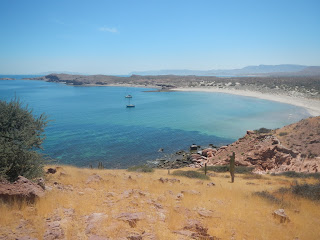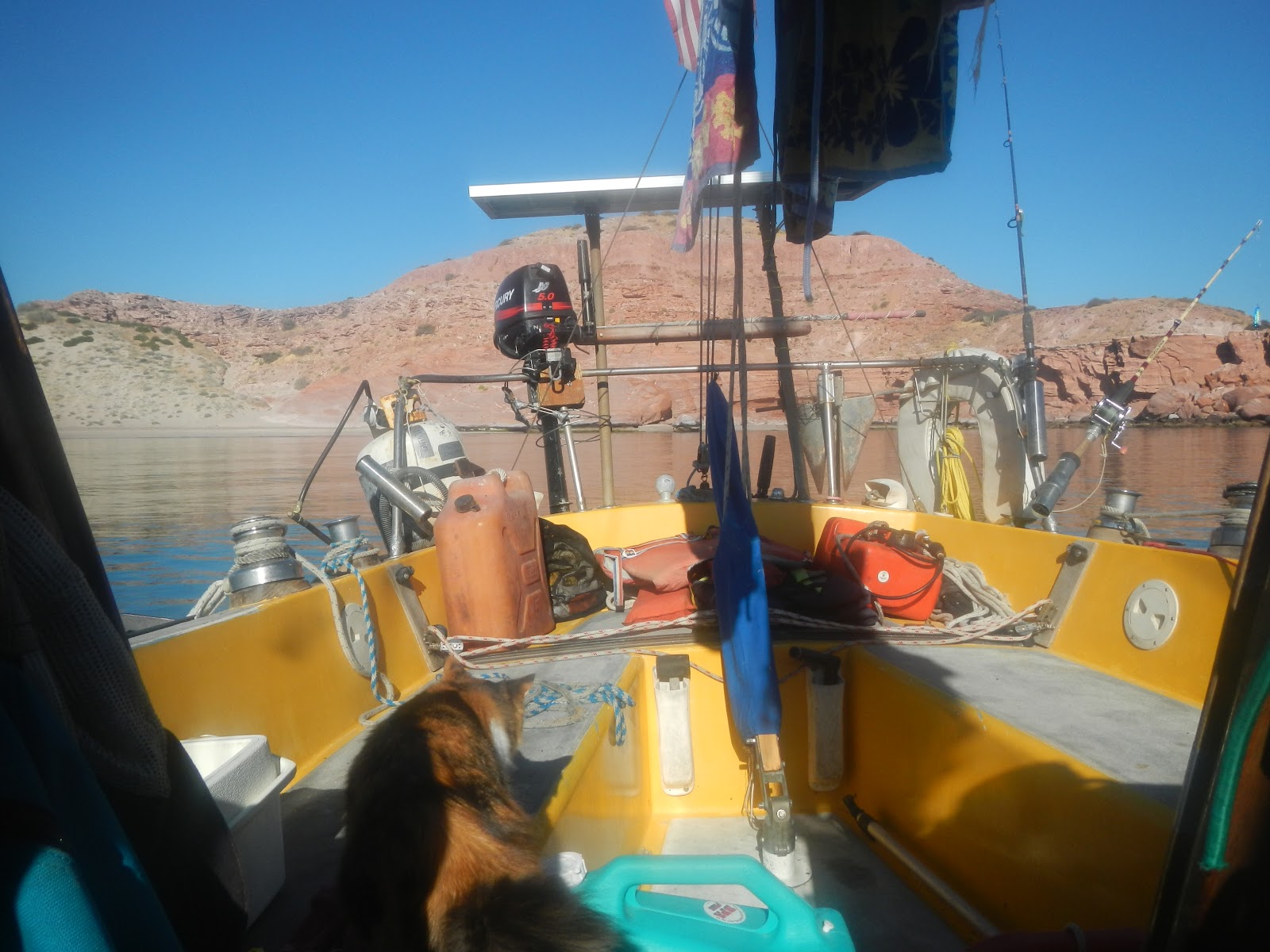 3/20 Anchor up at 11:00AM heading to Agua Verde 15 miles. Puerto Gato y Toro was beautiful! Very glad for the experience. No wind HOT 89º in the galley.