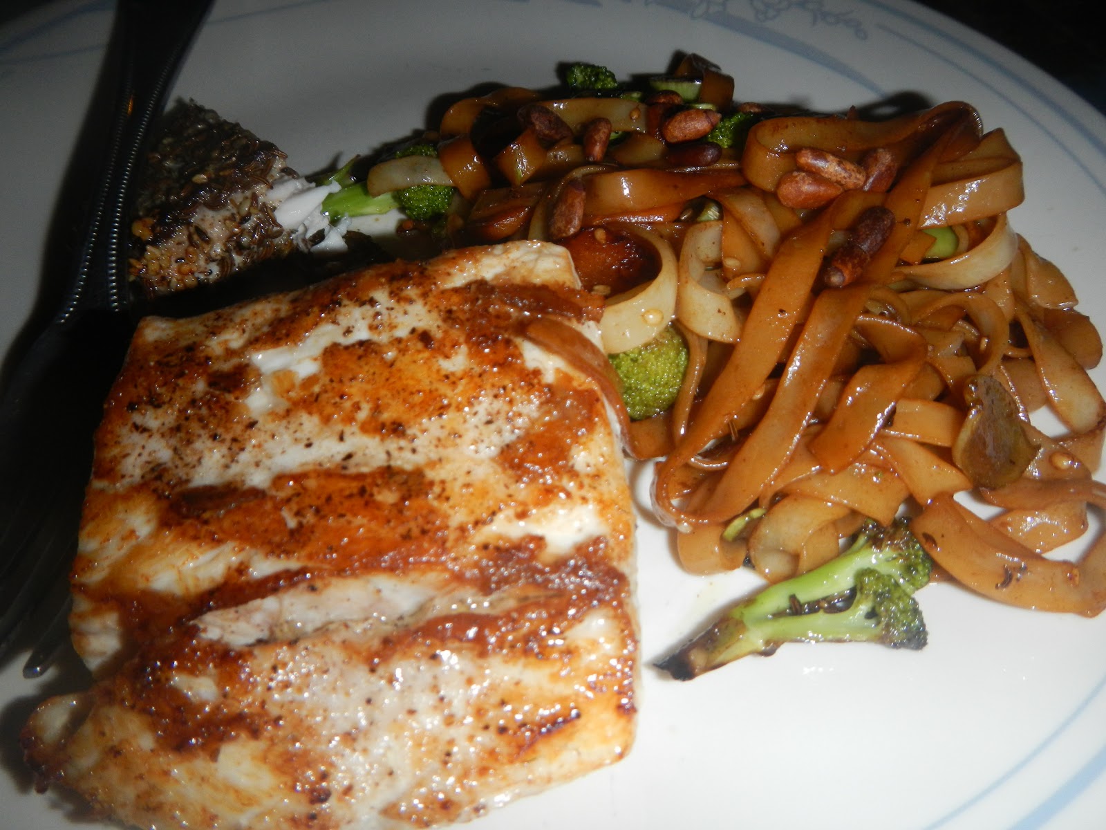seared yellow tail that bob caught with claire’s wok pasta