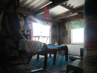 living room. simple construction of brick, steel, and tin roof
