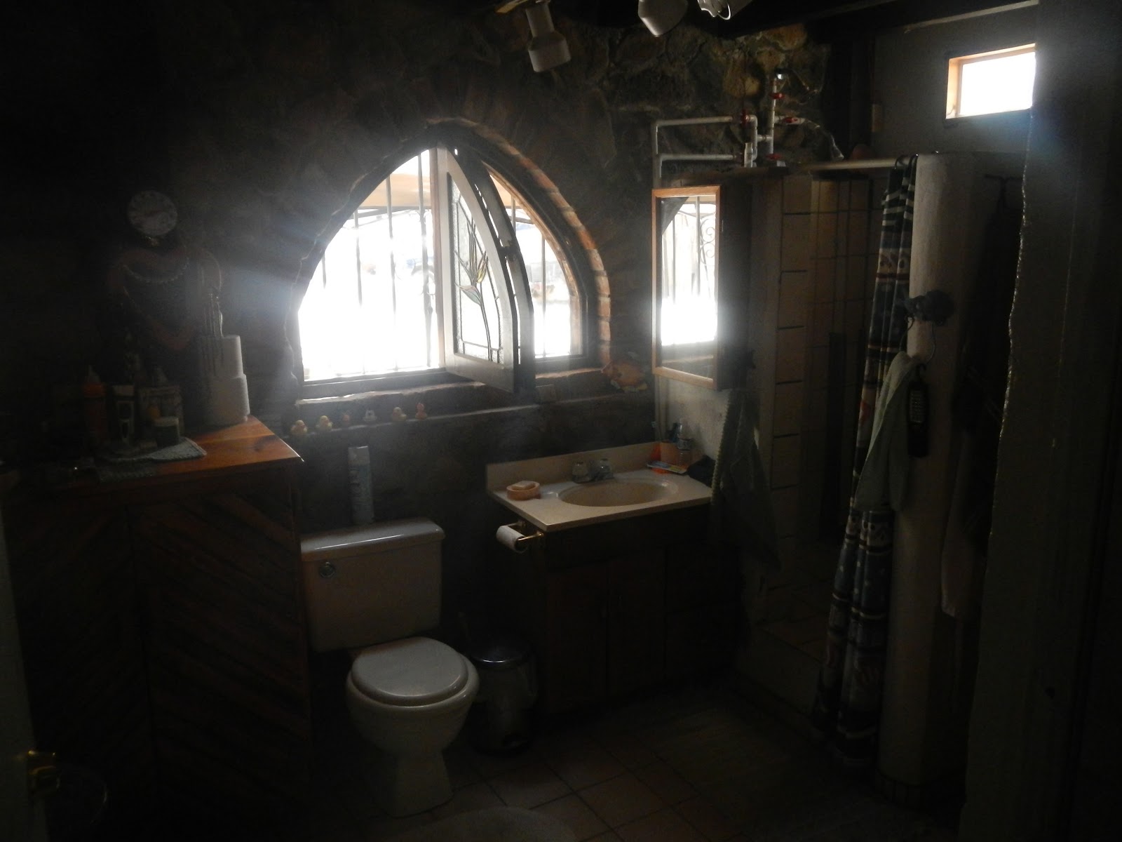 bathroom with custom stain glass windows