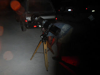 setting up the telescope with a clear desert night sky