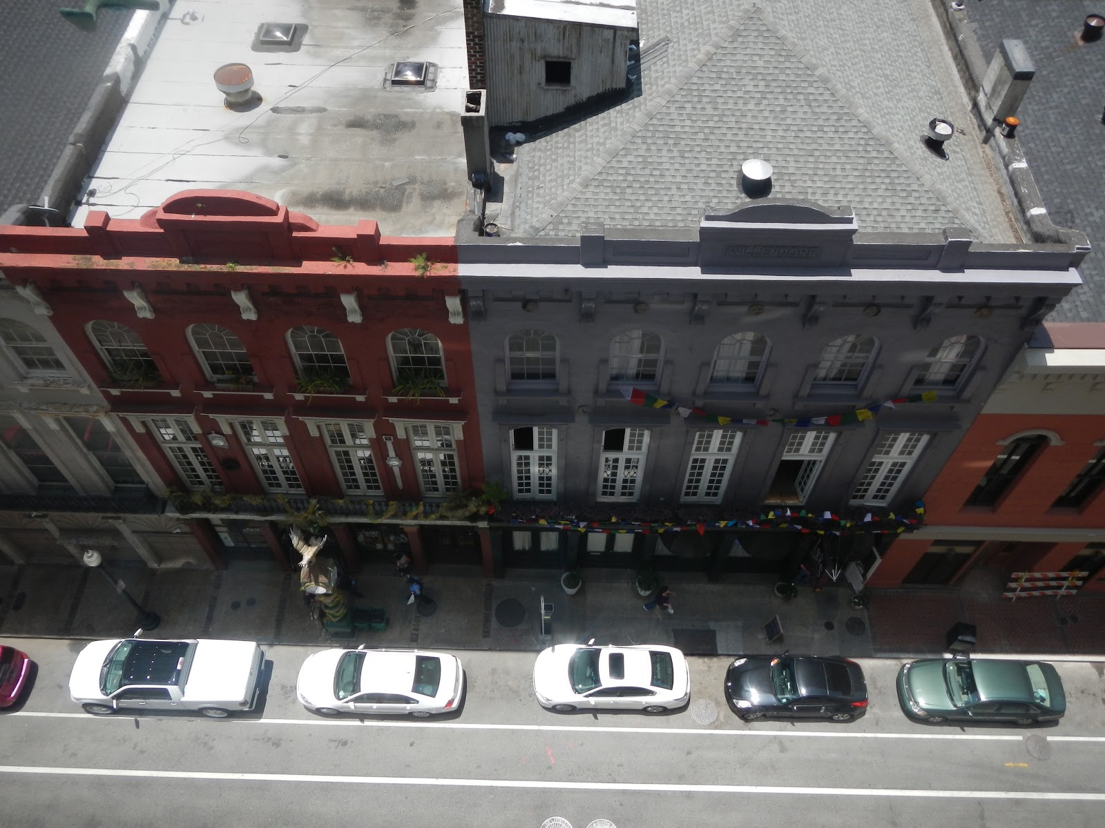 5/17 Slept until check out time. Got back to Piña and La Sancha to make sure everything was going ok in the garage. They were both angry. We were told by the manager that we could move to the upper floors of the garage and stay until 16:00. On the move up I busted the fin off of “the fox” my classic 50’s surfboard. Very upsetting, at least the manager refunded our parking. After moving the car, Claire and I went out for a stroll around the French Quarter. We had a shrimp Po’boy with red beans and rice. Good beer and drinks. Saw the Mississippi river.