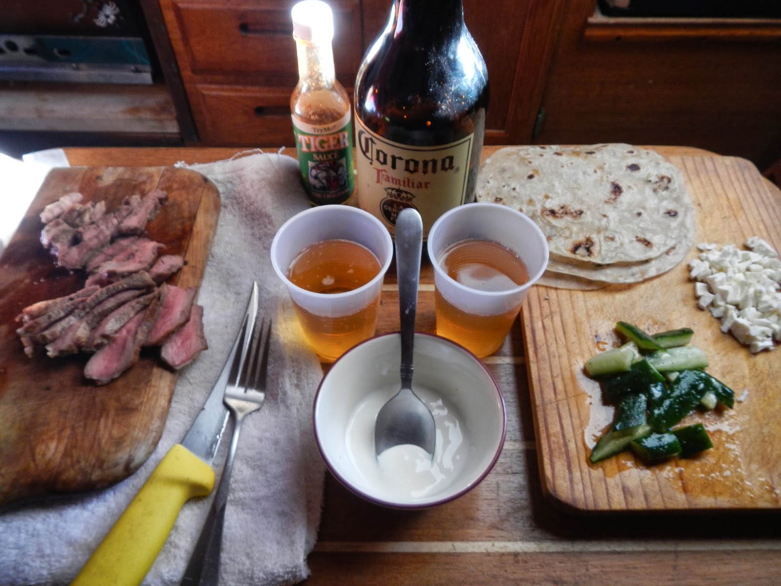 This past weekend all of us boatyard people decided to go on a camping trip. So we packed up our back packs added a few beers, random veggies, pancake mix, and our tent and headed to Empalme. A town about 20 minutes from here. George, Michael and I in George’s Dodge Ram. The Brits with their parents in their car. Rudy in his truck and Allen our caboose in his MoHome. We got to the beach around 3 and set up camp. We spent the day collecting wood for a fire, making a homemade put put course, taking turns on the kayak and enjoying the sun. We had grabbed some fresh seafood on the way and Michael prepared a huge pot of Mexican Seafood Paella, which is what we called it. After we had soaked up everything we could from the beach that day we went to sleep with full bellies. The morning brought another day of sunshine. Allen and I fixed up a huge breakfast and we left. A few days later having the itch to get out of the yard and finally be back in La Sancha we set out to explore a new cove. We are now slowly getting to work on preparing Splendid for the trailer and the open road.