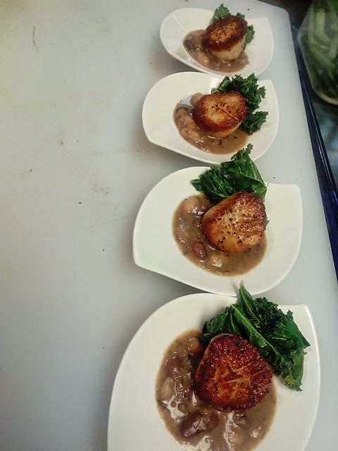 seared diver scallops, heirloom beans, pan braised kale