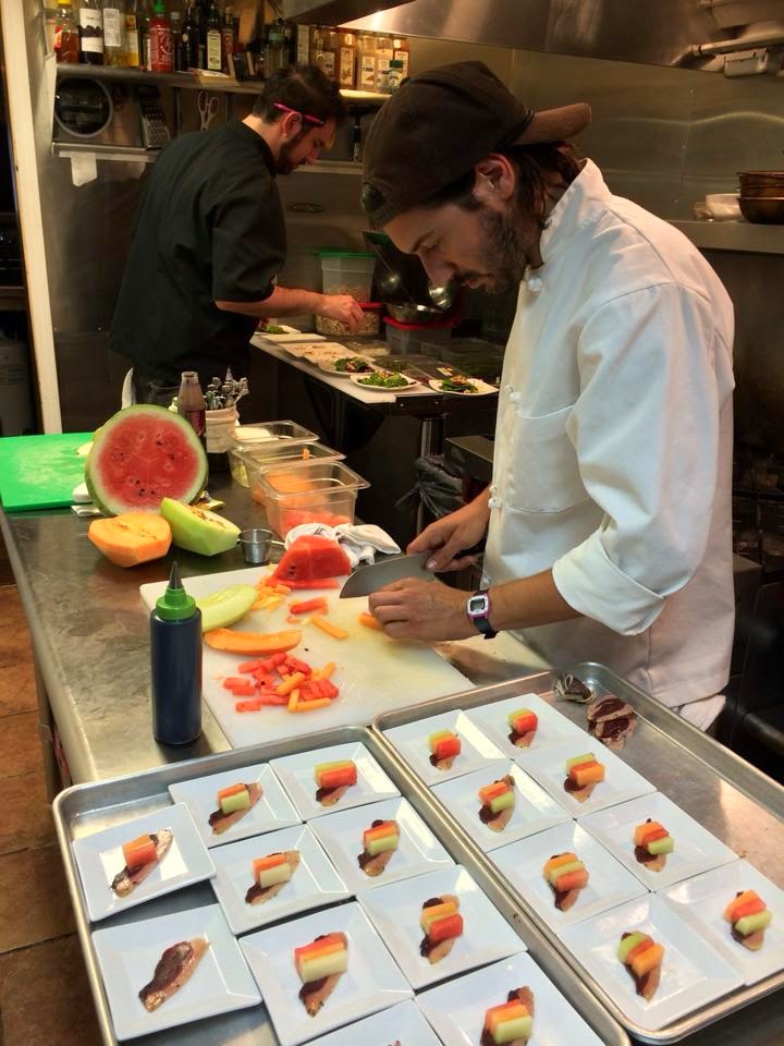 Cured duck breast, melons, balsamic reduction
