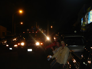 I love all the sunrise/sunset pics! Your hair looks good- so does Claire's, did she dye it darker? Looks darker in some of the pics. The Carnival masks = the shit. Nice work! Love all the pics of the festivities and parade, looks like a really fun time to be in La Paz. Pina cracks me up, she's a trooper. Nice kid outfit. Are you saying I should have one so you can dress it all colorful??