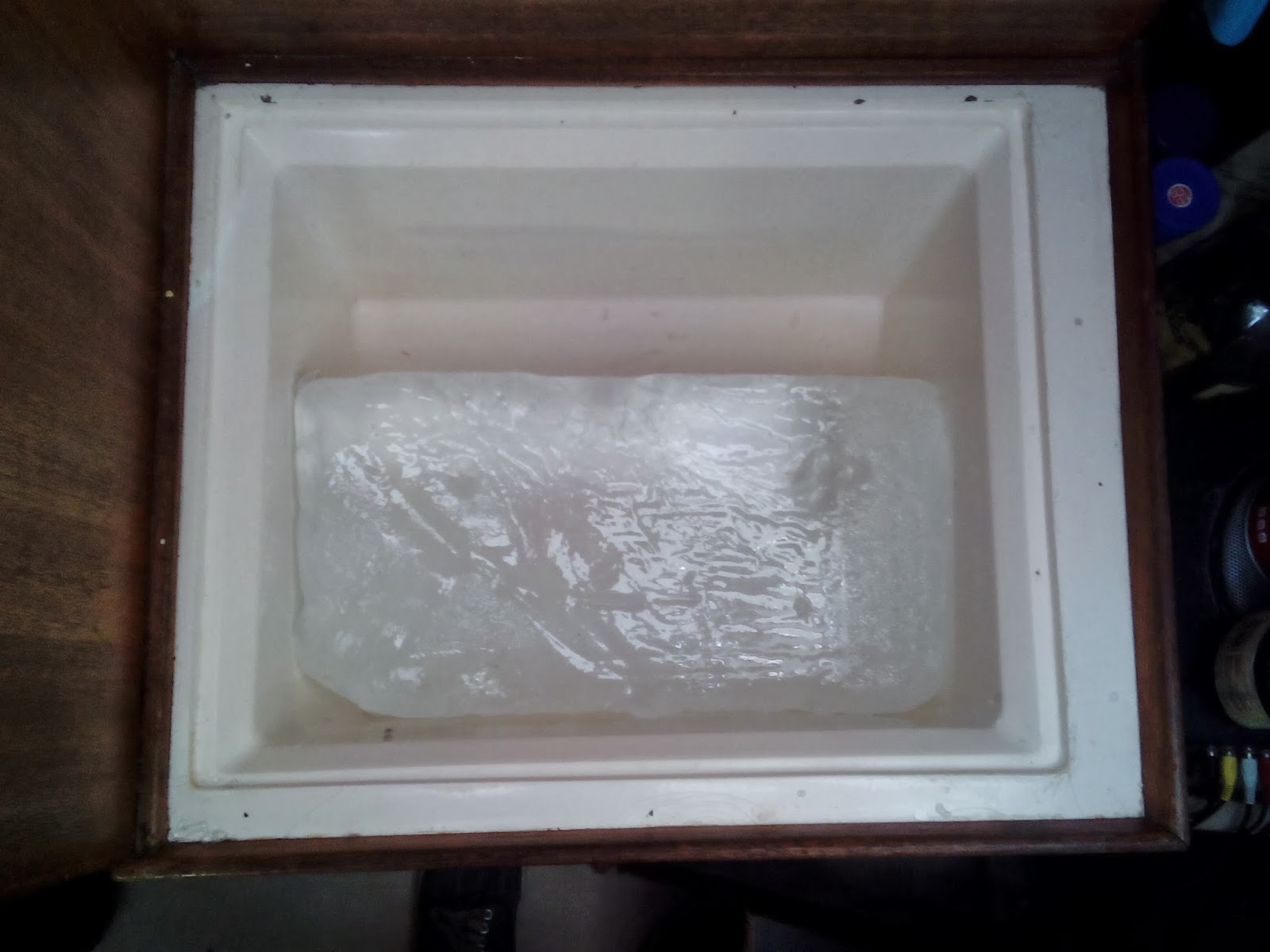 Giant block of ice about $3. lasts over a week.