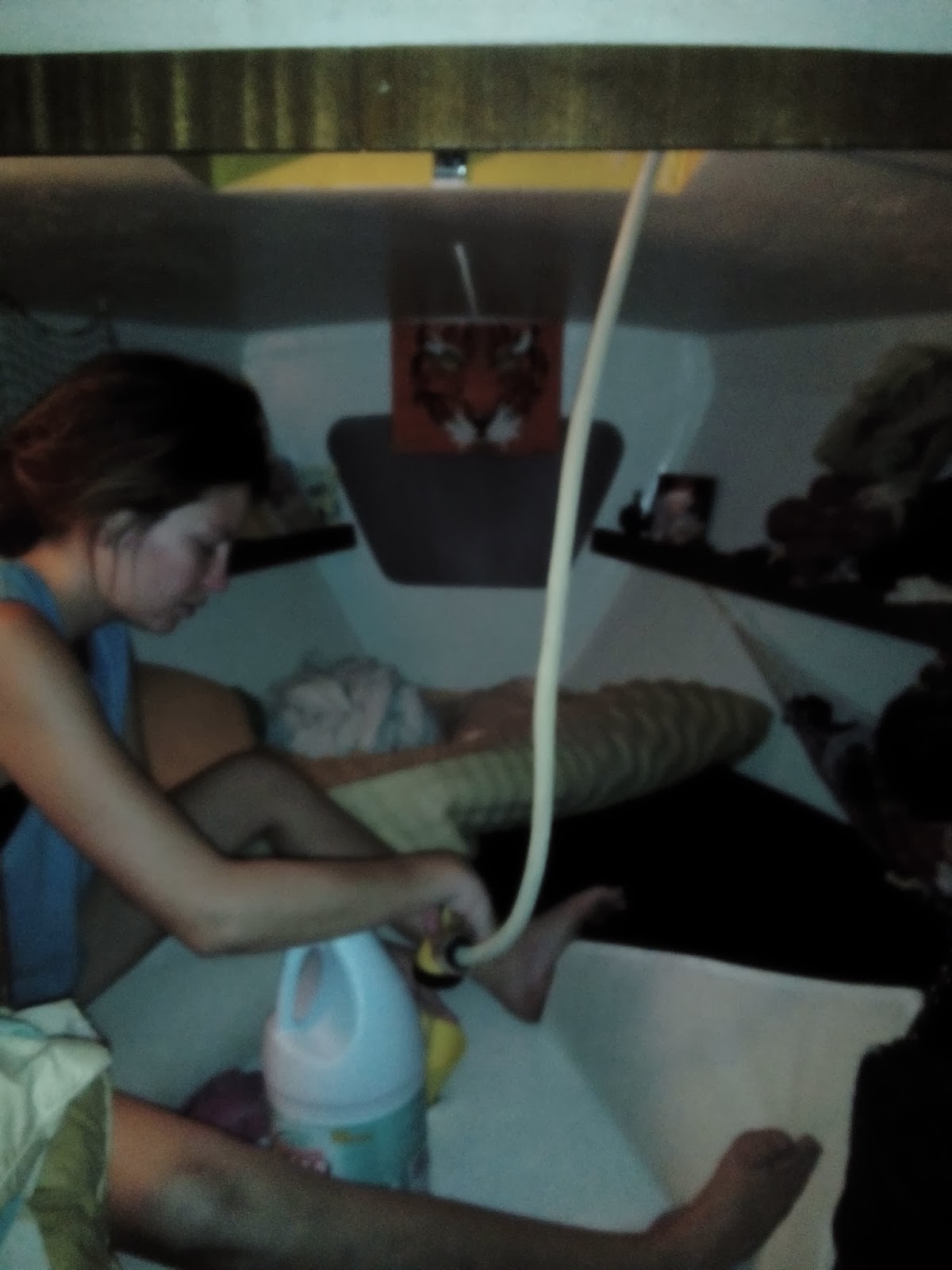 refilling our fresh water tank under the V-berth