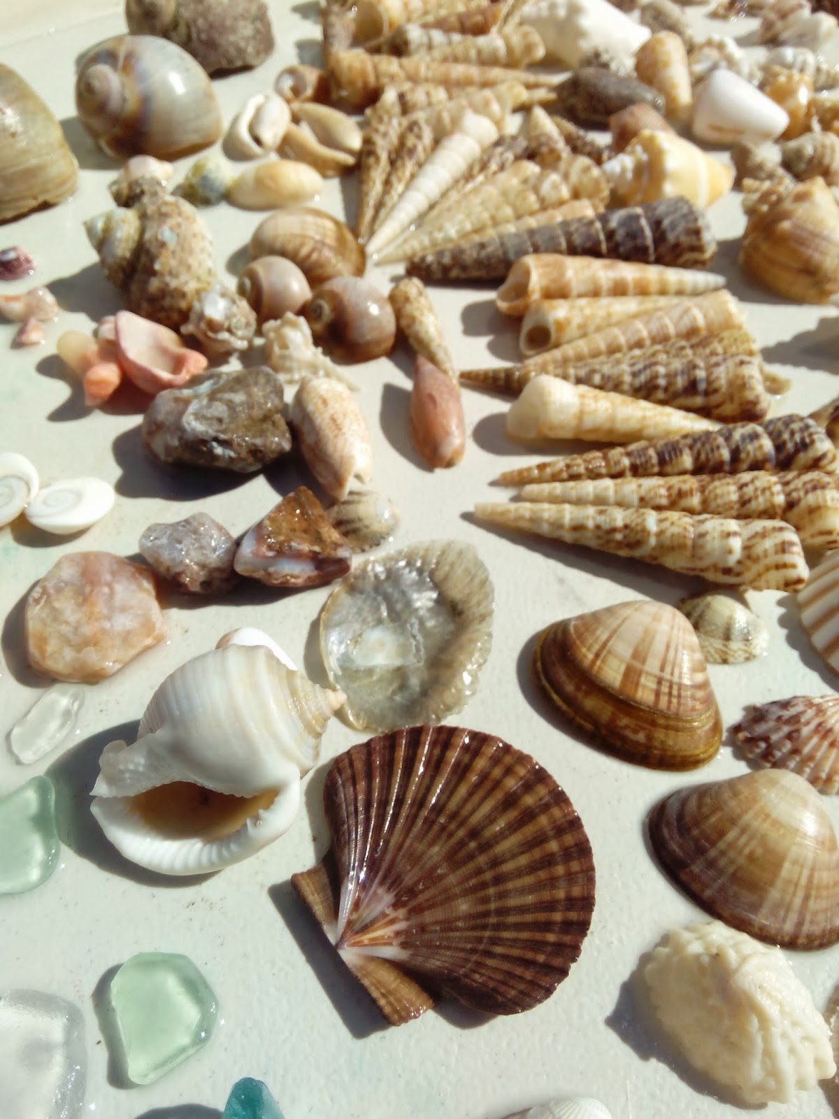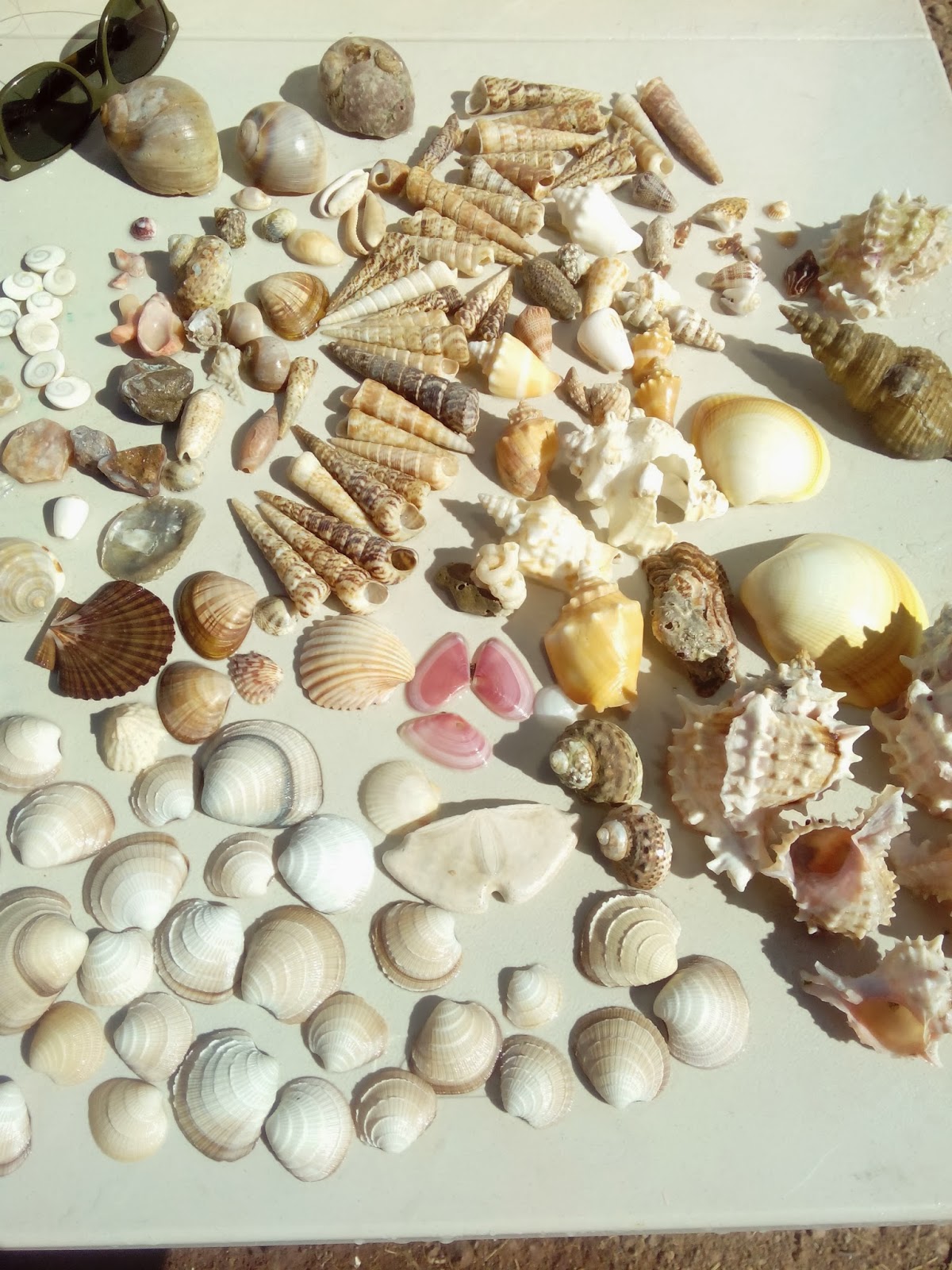 I'm pretty much obsessed with that flat, dark brown scallop shell <3 those light pink clam shells are super pretty too! Your pics always make me hungry and now I want churros. Also, that last pic I totally thought you were shirtless with some crazy new tribal tattoos across your chest.