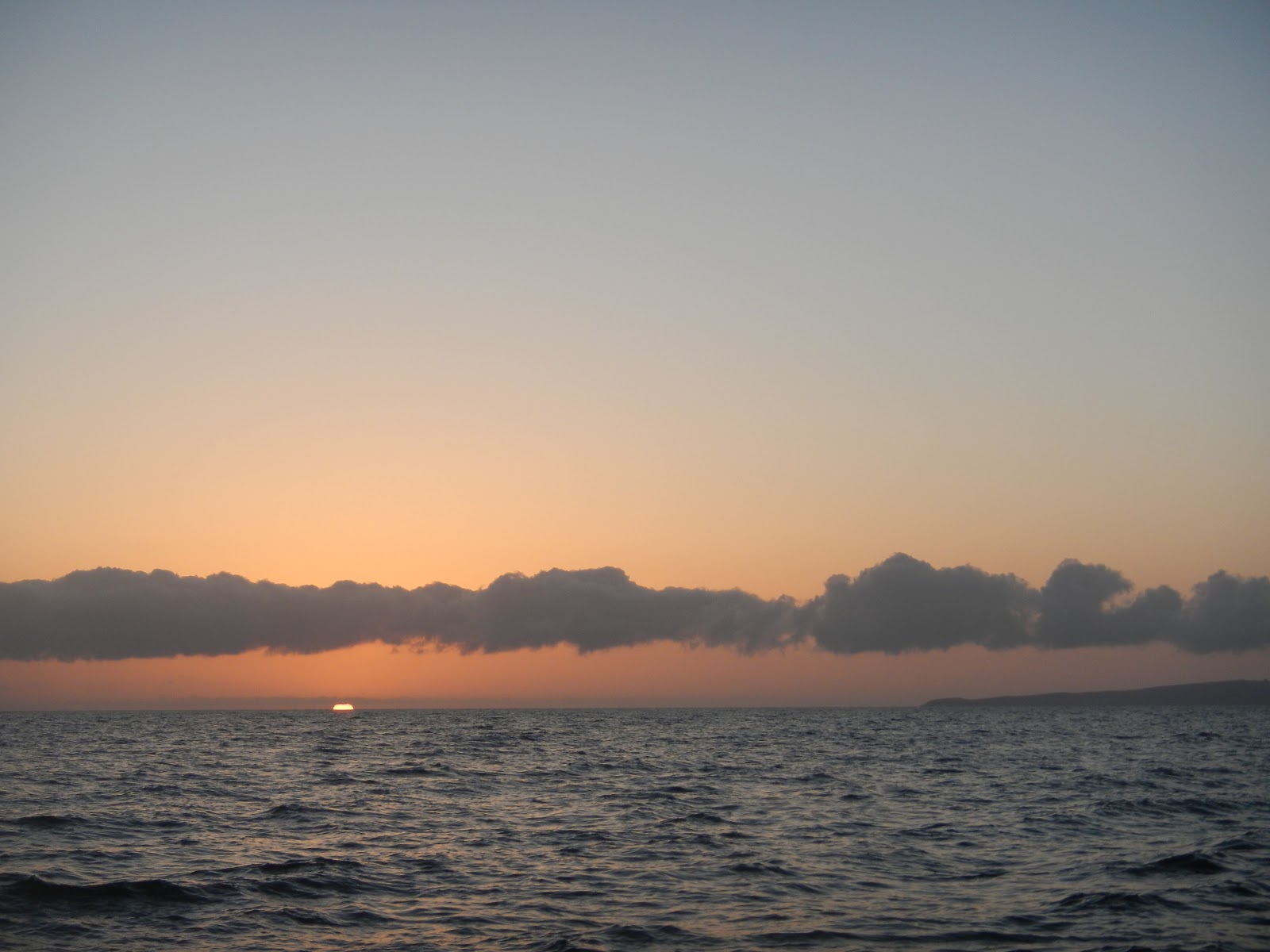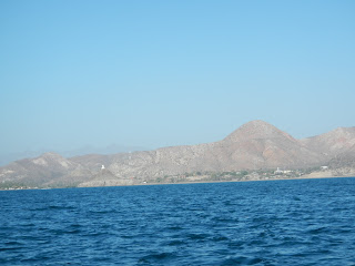4/12 Finally no more hard WNW wind. Anchor up at 10AM a little late. Leaving San Juanico. Plan is to sail as far north as we can get to Coyote. ESE winds. 2 ft swell. Most of the day. Best beam reach of our trip. Holding 6.5 kts sometimes 7! Pulled into view of tiny San Sebastian aka Puerco. Adorable little bay but with East wind and swell growing it looked uncomfortable and ‘Splendid Isolation’ was loving this beam reach. Claire threw our first reef into the main and we cruised on. 20 miles left to Santo Domingo. 15:00 Cruising 5.5 kts with just enough time to make it by dusk! Anchor down at 20:30 off Sombrerito just outside the Mulegé river mouth. Decided to go here over Domingo or Coyote. Uncomfortable rocking with the sets but we made it through the night. We almost ran aground coming in the dark. Greatest day of sailing yet. Wing and wing off Punta Conception. Over 5 kts all day, usually 6+. Someone hailed uf on the VHF but we missed it because I was setting the anchor and claire was pulling the dinghy in. Oh well.