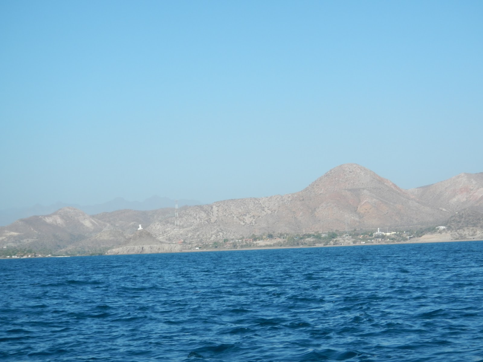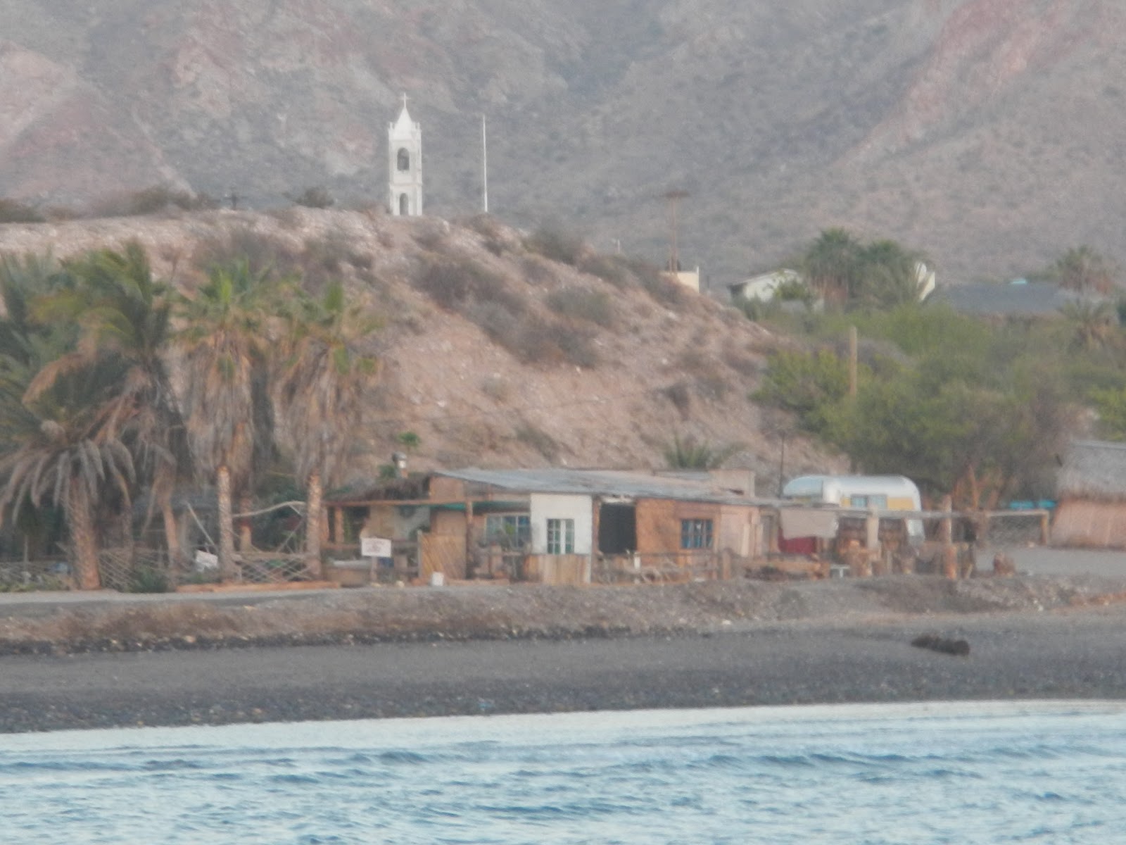 4/13 “HARD TO PORT!” repeated in my head all night. That’s what I had shouted to Claire when I saw the shoal and shoreline, hearing voices from the restaurant. We came close last night. Horrible depth perception in the dark, plus over the shoal was more water, so it all blended together. Woke up every few hours to check the depth sounder. Depths of 17 feet and 13 feet at low tide just before sunrise. It got calm for a few hours in the still of the night. Back to slight north breeze and rocking with the stunning sunrise. Fluffy clouds out there make me think of south winds. Now that I can see…we almost beached it last night. We’re anchored literally on the shore. WOW. We are officially grounding sluts. 4th time? 5th? Anchor up around 7:30. We motored out off the river mouth. Scoped it out and watched pangas go up the channel. Our cruising guides say its possible for shallow draft boats to get into the rivermouth, to anchor or tie to the small pier. Which sounded nice, calm, and a quick dinghy ride up the river to town. So we crept in at 1.5 knots sounding 11ft. All good. Got in and saw that since our out of date cruising guides, things have changed. Not at all as spacious as it seemed on paper. As we decided to abort, we grounded. I checked the sounder. Said 10 ½ feet. Put a stick over the side and stuck the bottom. I reset the depth sounder so its as accurate as can be. It’s been offset by 5 feet this whole time. So last night was actually only 7 feet of water right off the shore. We tried to push off with the stick and reverse the motor. That had worked in La Paz. Not here, it was sediment river mouth, soft bottom. Luckily I timed it with the tide and it was getting higher for the next hour. I dinghyed off the old dock and it was a few feet deeper, but not worth sticking around for. After some patience we floated up off the bottom while Claire spun the boat around 180º. Got out of there around 9AM. En route to Coyote Bay. North wind picked up. South was forecasted. Which was ok because we flew down the entry way. Very thankful we sailed over 50 miles yesterday. Anchor down in Coyote Bay, east of Isla Ramon. Gorgeous houses. Good wind protection. 17’ of water.