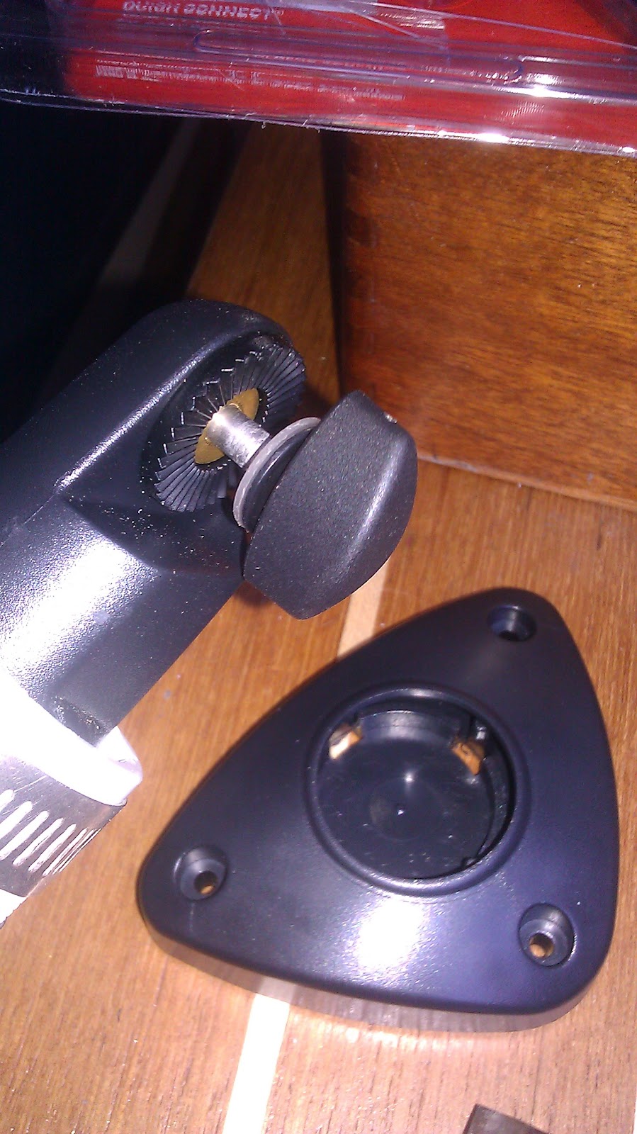 here’s the mount that came with the plotter. pretty basic. baseplate bolts down, swivel bracket fits in. i removed the basemount and saved that just incase i needed it for a future project.