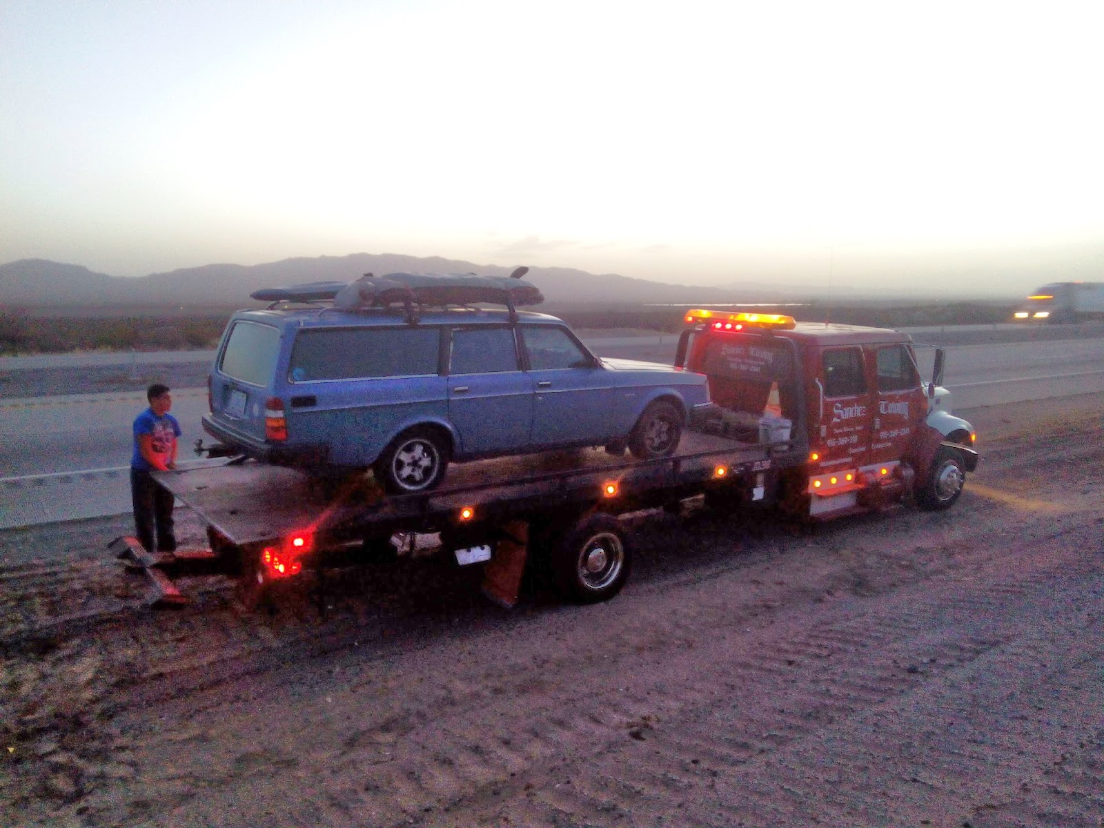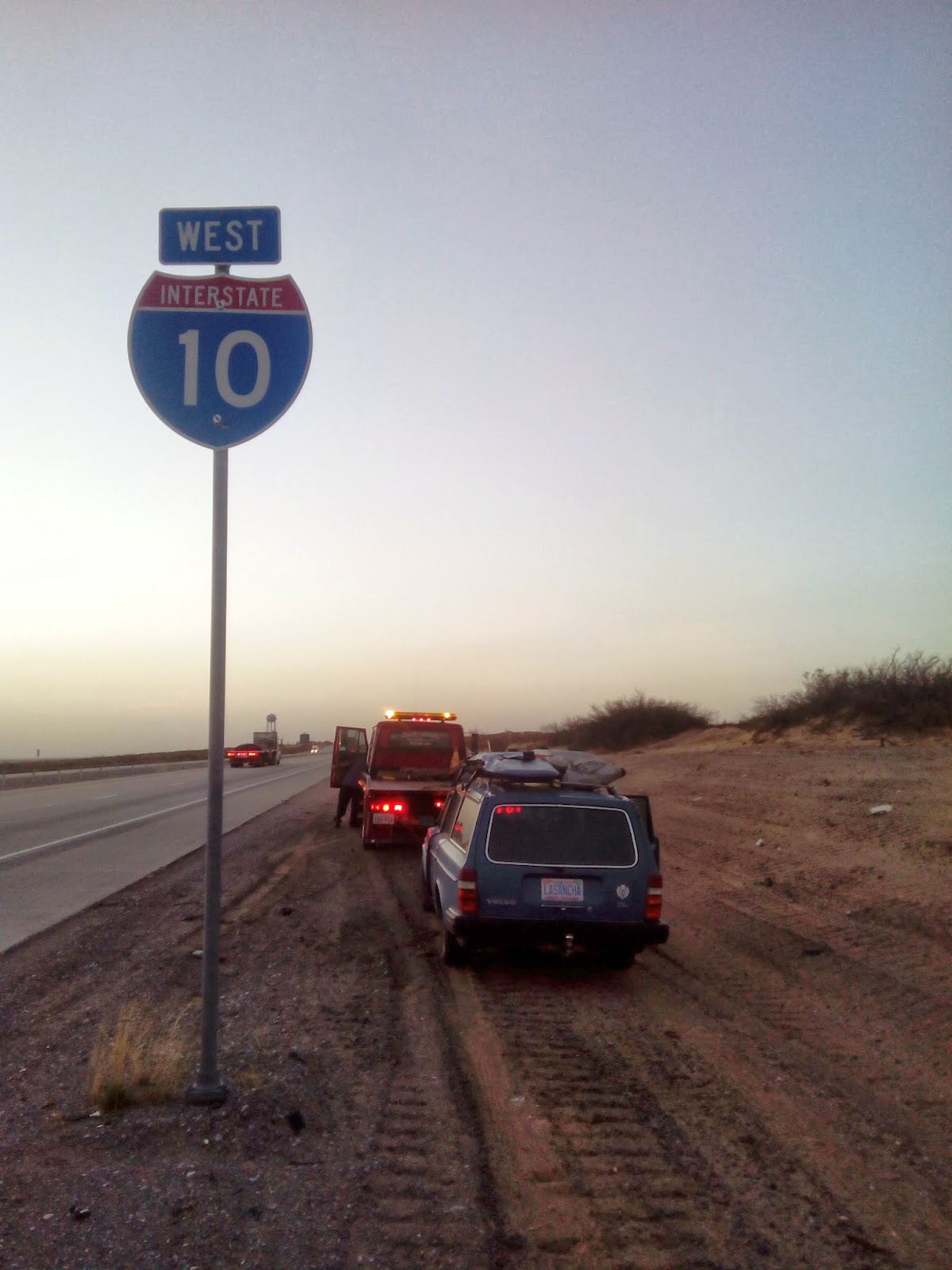 March 13th we broke down about an hour outside of El Paso, Texas. Alternator died on us. We got a free AAA tow into the city. Got dropped off at Pep-Boy’s 15 minutes before closing. They took the Volvo into their locked garage over night and gave us a ride to the Day’s Inn up the road. After two days of waiting for our alternator to arrive and to be installed, we were back on the road.