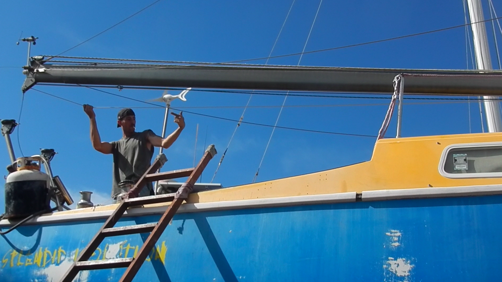 Securing all the halyards and rigging cables for the highway.