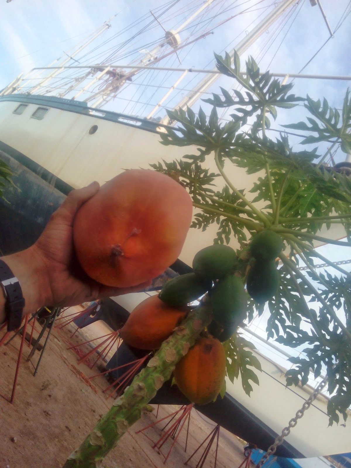 papayas growing in the boatyard