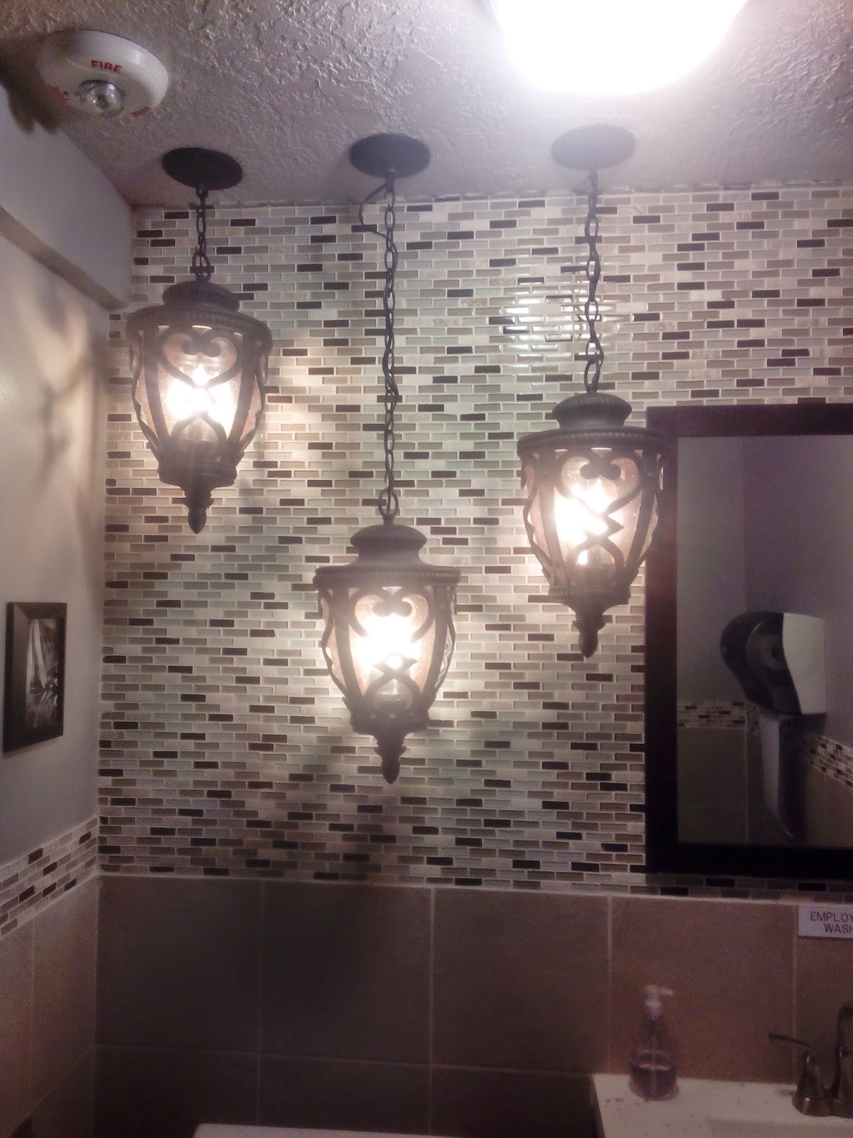 after an hour or so in the attic i had these ceiling fixtures hung in the men’s bathroom