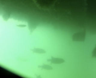 crazy puffer fish under the dock.