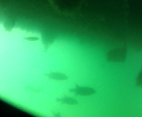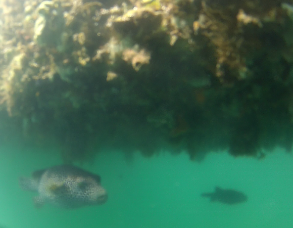crazy puffer fish under the dock.