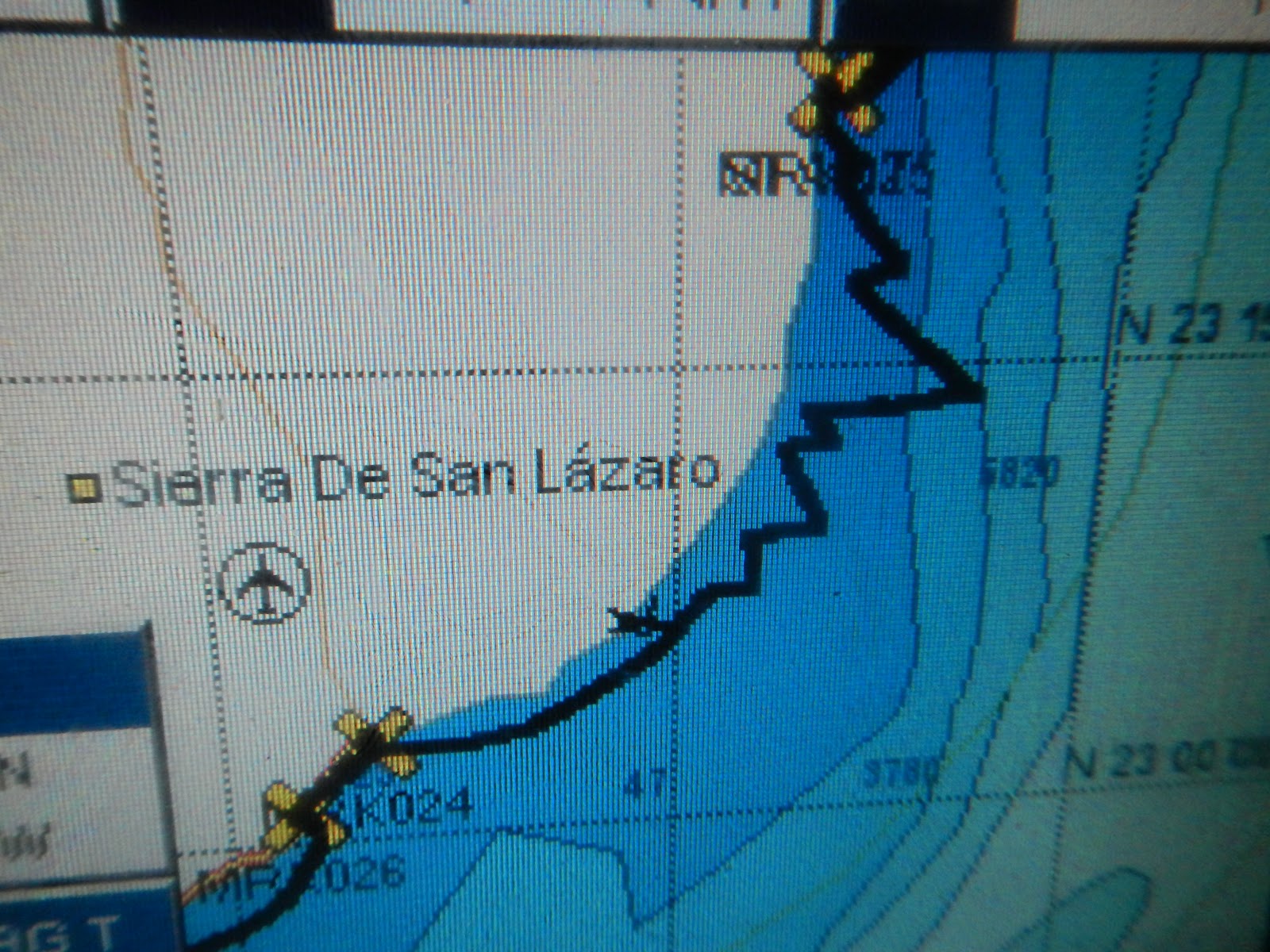 our path of tacking up the coast from san jose to frailes
