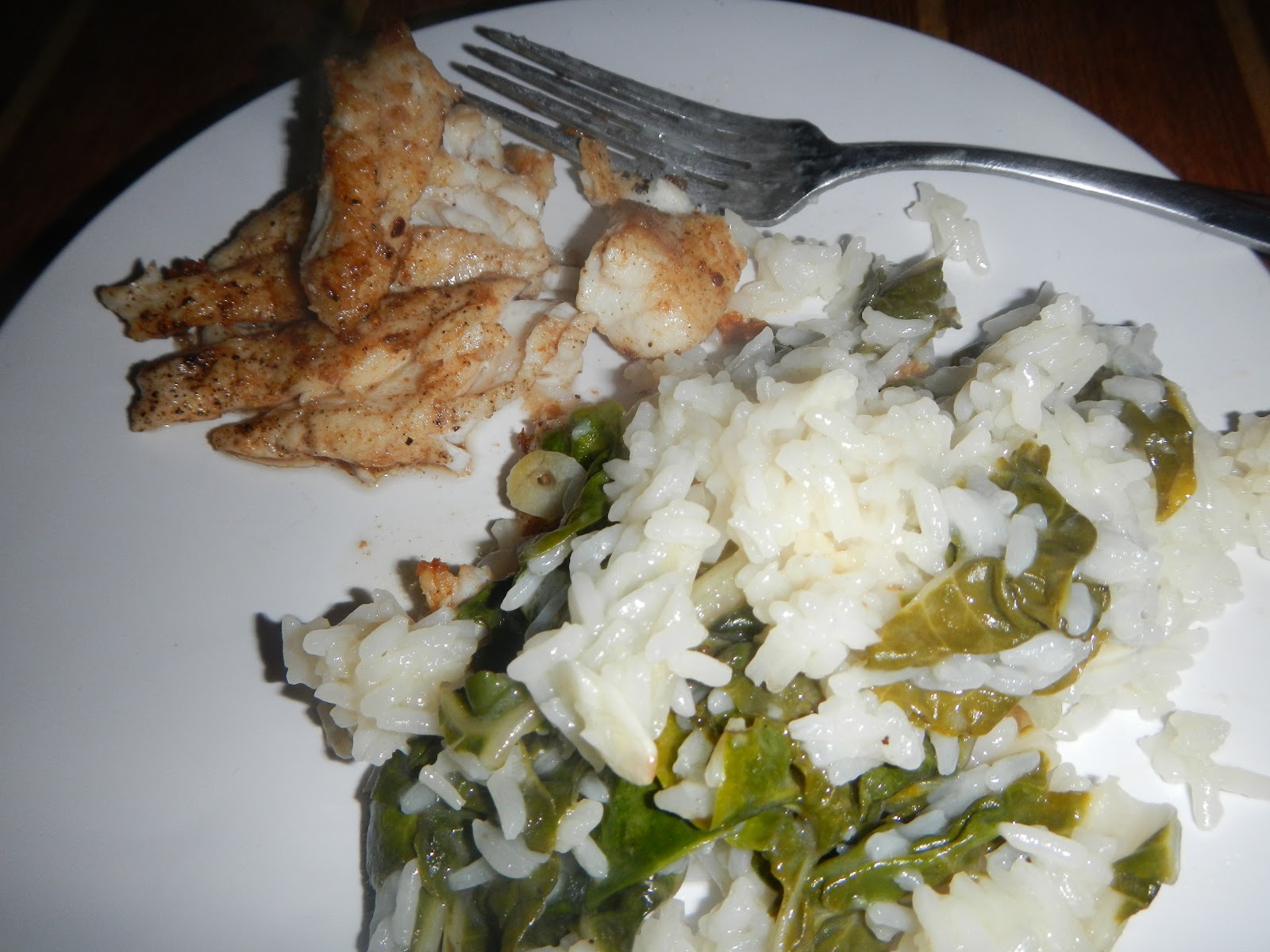 catfish, leftover tomato soup veggie rice, white corn