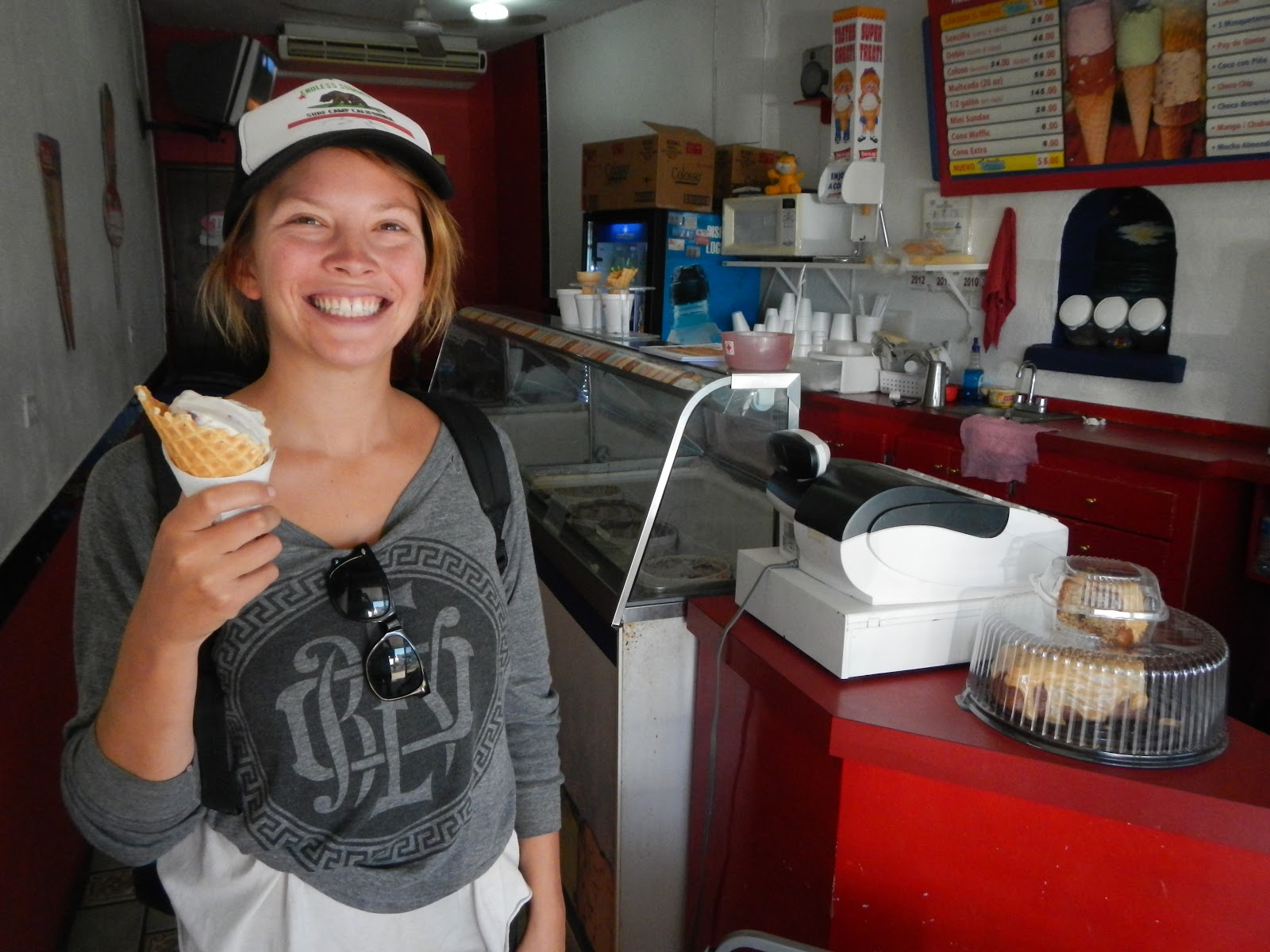 That post made me extremely hungry. It looks like you're going to be an expert fisherman by the end of your trip. Claire looks extremely happy with her ice cream cone. Also, your new haircut looks like it's going to really help you blend in with the locals…..