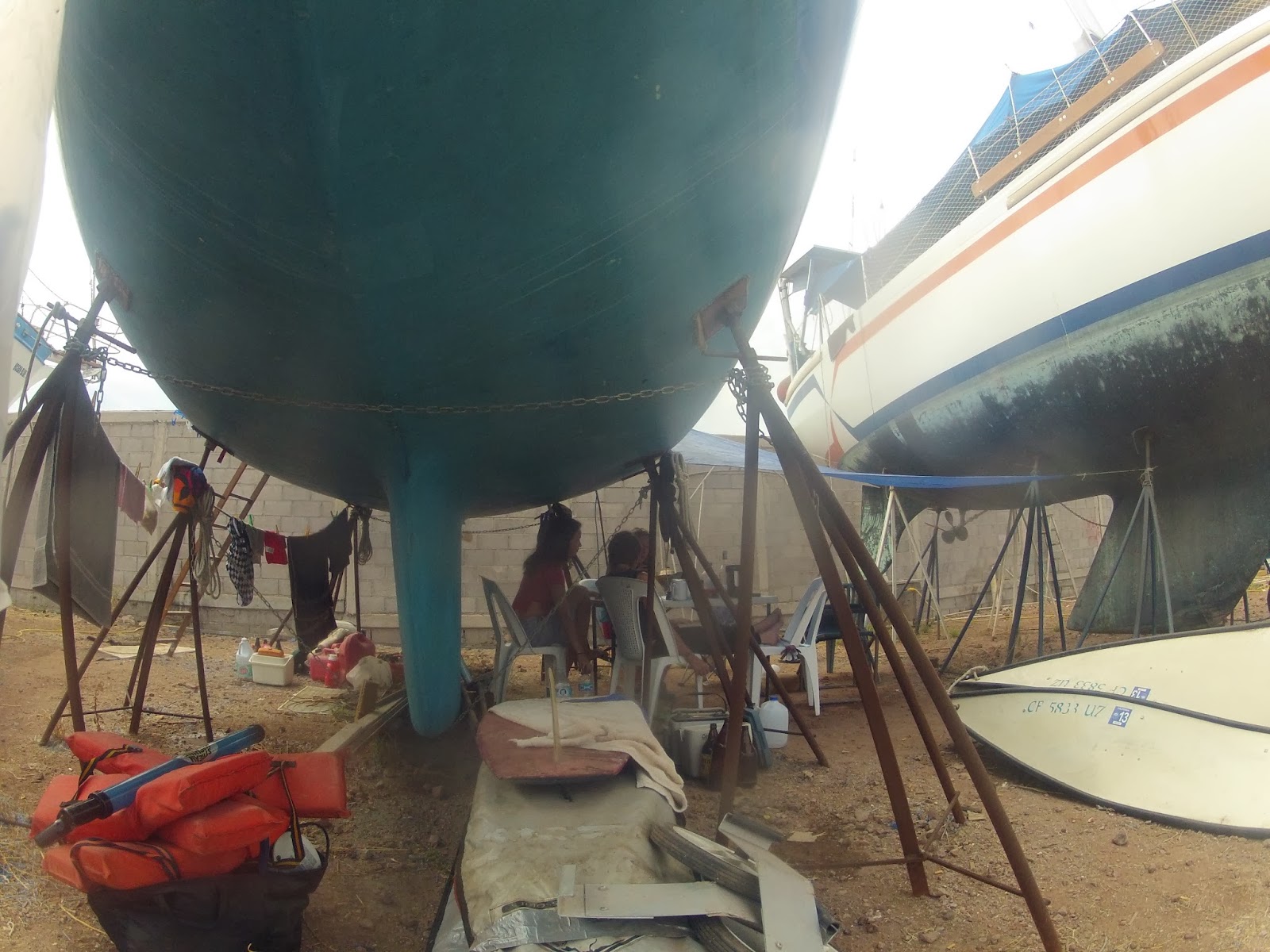 Our friends Nia and Mike on Azul getting put back in for their crossing to La Paz