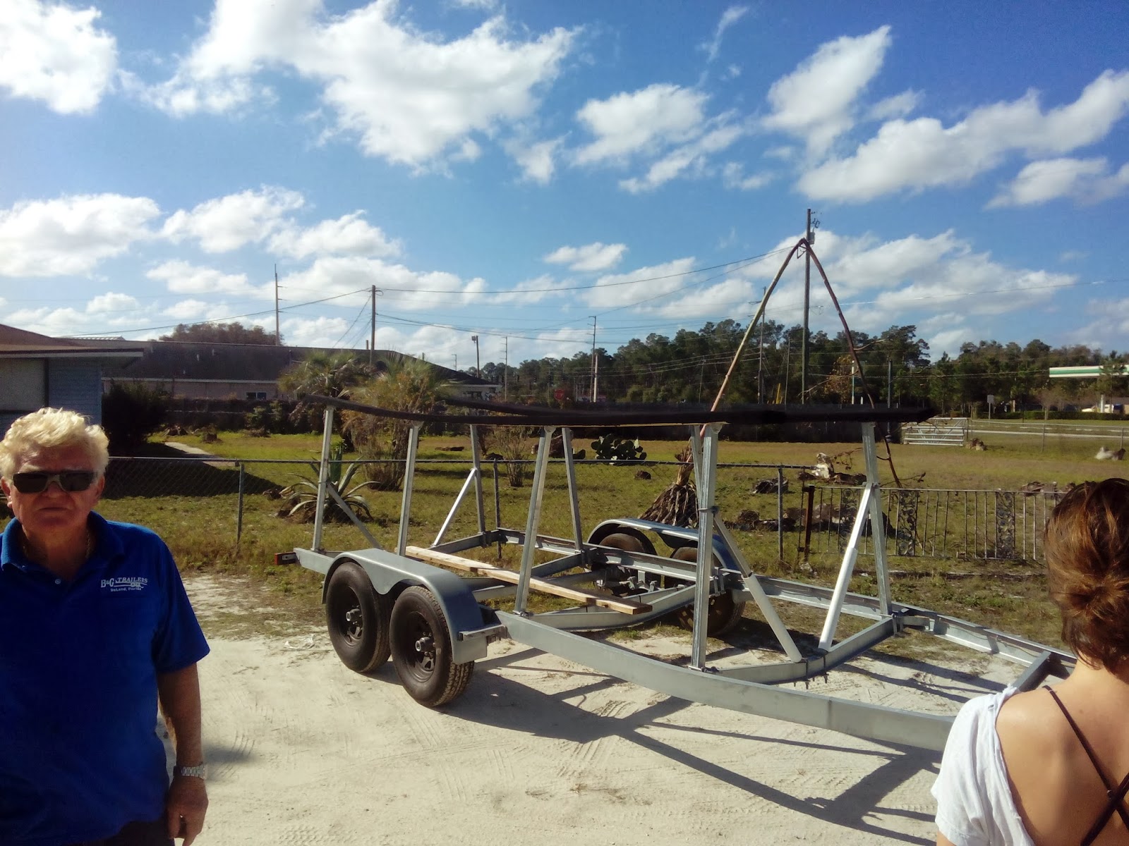 We left North Carolina on the hunt for a sail boat trailer.  We weren’t sure if we would get one used or new.  Craigslist, Classifieds, Word of Mouth, or Custom built? Florida, Alabama, Mississippi, Louisiana, Texas?  We left with an open mind.  My Grandfather has a friend/client that owns a Marina in Florida.  He called him to ask what he knew about sail boat trailers.  He then recommended us to call George at B & G trailers.  DeLand being only 30 minutes from my Grandparent’s we were there the next day, wandering the yard, and learning a lot about trailers. Doing my home-work, I called the top two trailer dealers in each Gulf state, none of them coming within $1,500 of George’s asking price. With-in a week, we had him configure a custom rig to fit the dimensions of Splendid Isolation.